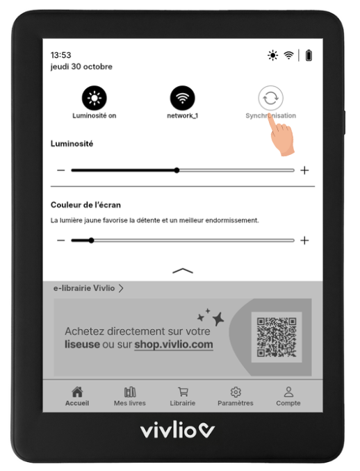 Tous les nouveaux modèles de liseuses Vivlio bénéficient du système de synchronisation automatique, c'est-à-dire que vos achats sont directement synchronisés avec la Bibliothèque de votre liseuse.