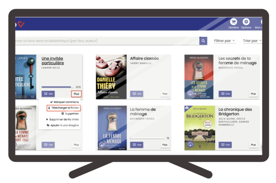 Voici la procédure pour télécharger le livre manuellement sur ordinateur pour le mettre sur liseuse :