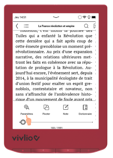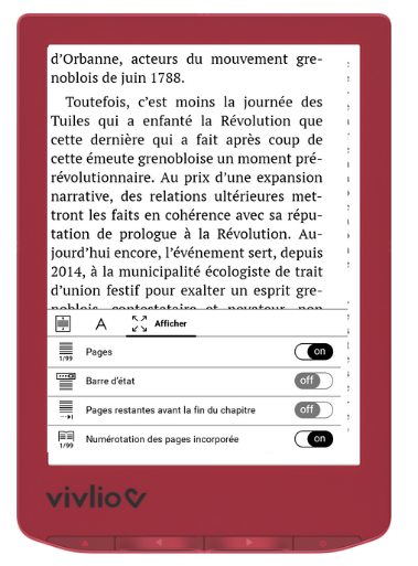 Pour afficher les numéros de pages lors de la lecture d'un e-book (pour connaître le nombre de pages restantes à lire, par exemple) :
